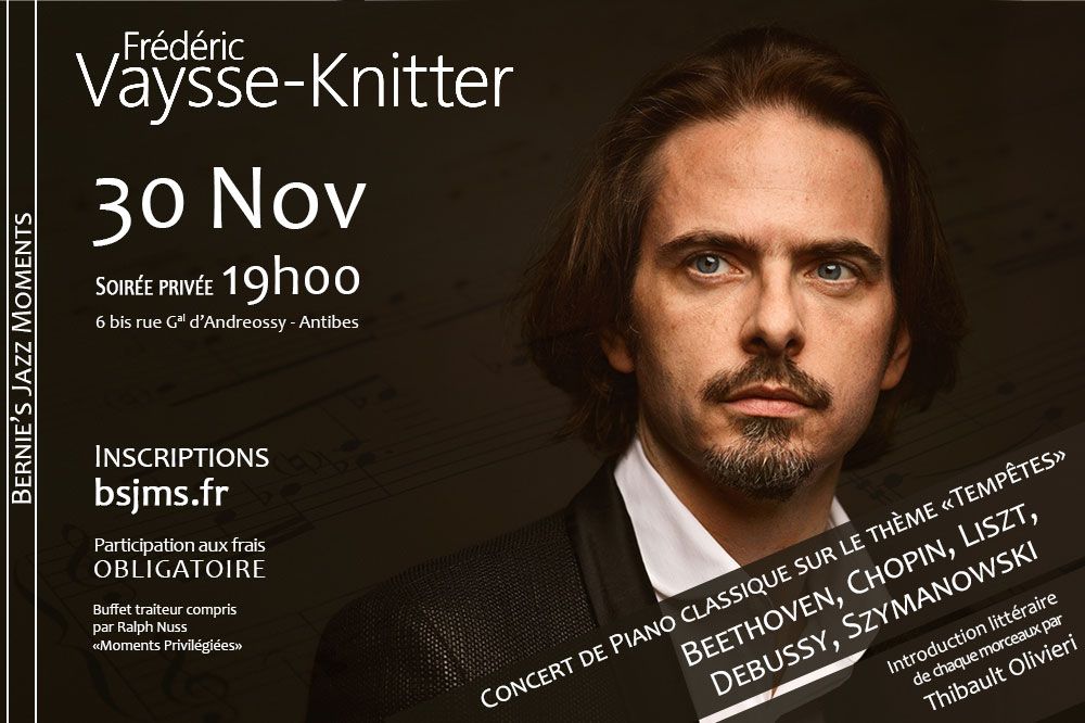 Les morceaux choisis du concert de ce soir tourneront autour de la thématique de la Tempête. Frédéric interprètera des prièces musicales de Beethoven, Chopin, Liszt, Debussy ou encore Szymanowski. Chacun des morceaux sera présenté par un texte de littérature écrit par Thibault Olivieri.