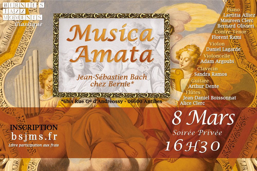 // Musica Amata invite Jean-Sébastien Bach chez Bernie ! Cette formation classique est avant tout une formation d'artistes de talent tous amis dans la vie, un gage de qualité artistique.